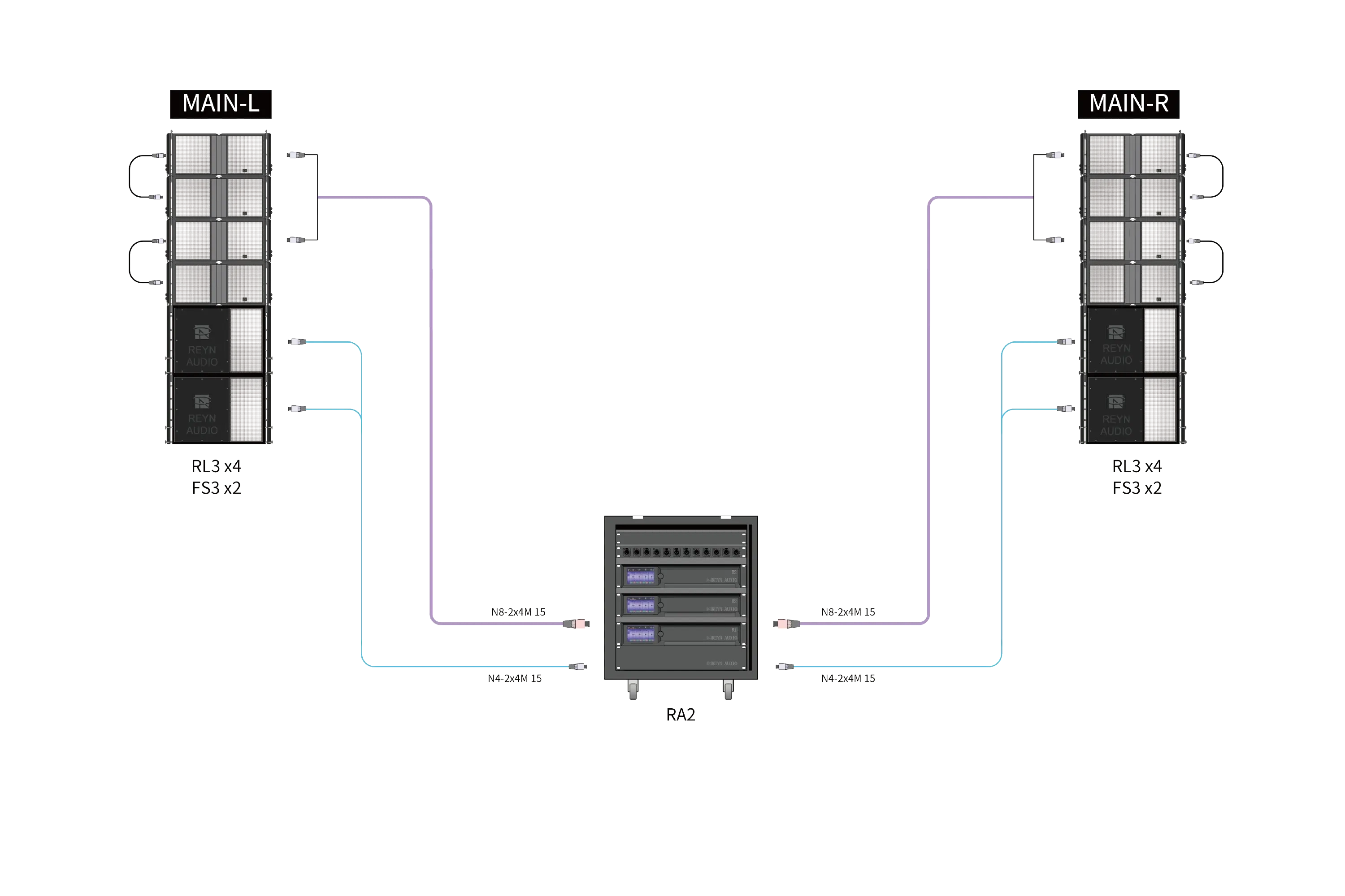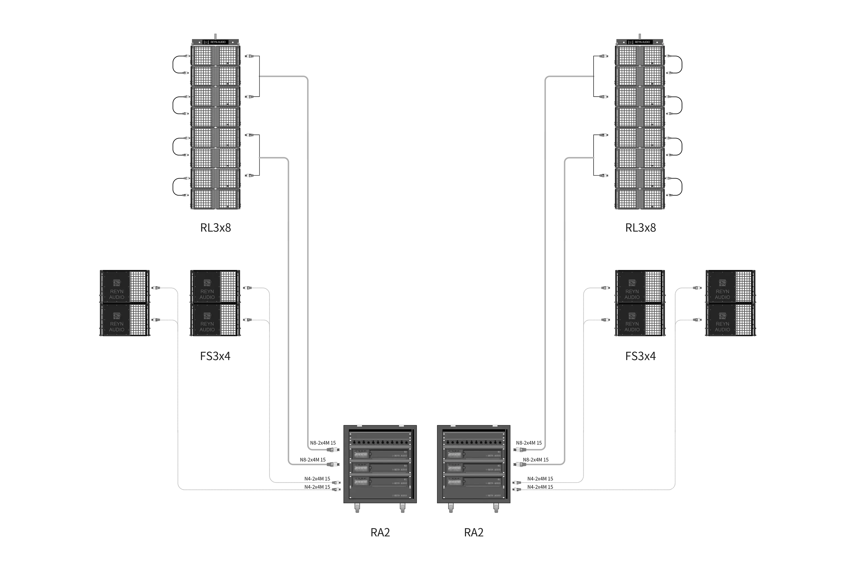 RL3 既可作为高性能独立系统灵活组建,也能与RL15等系统搭配,在声音特性、动态余量及声场覆盖方面实现完美补声与扩展,是中央音箱组或延时应用的理想选择。