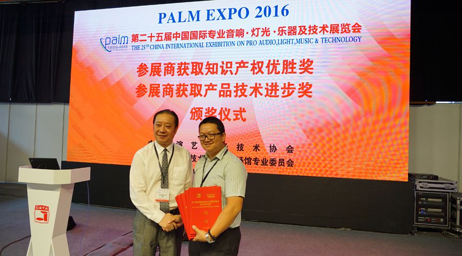 继9月1日获得由中国演艺设备技术协会颁发的最具价值品牌和优秀会员单位外,今天,在PALM EXPO 2016参展商获取知识产权优胜奖及产品技术进步奖中我们继续谱写光环!