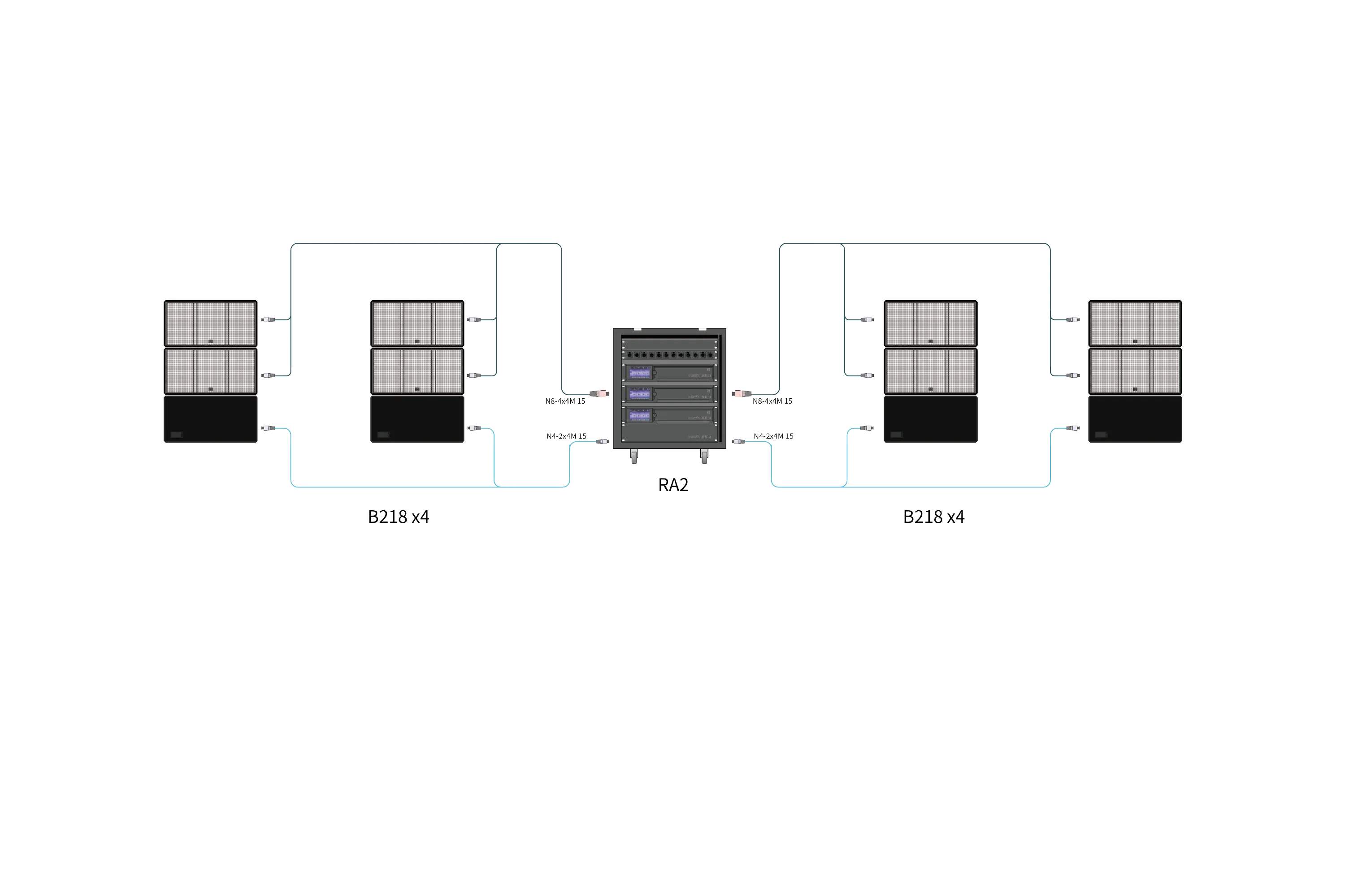 B218 支持3只及3只倍数箱体构建心形超低音阵列——将其中1只箱体反向安装,并调用专属心形参数驱动。
