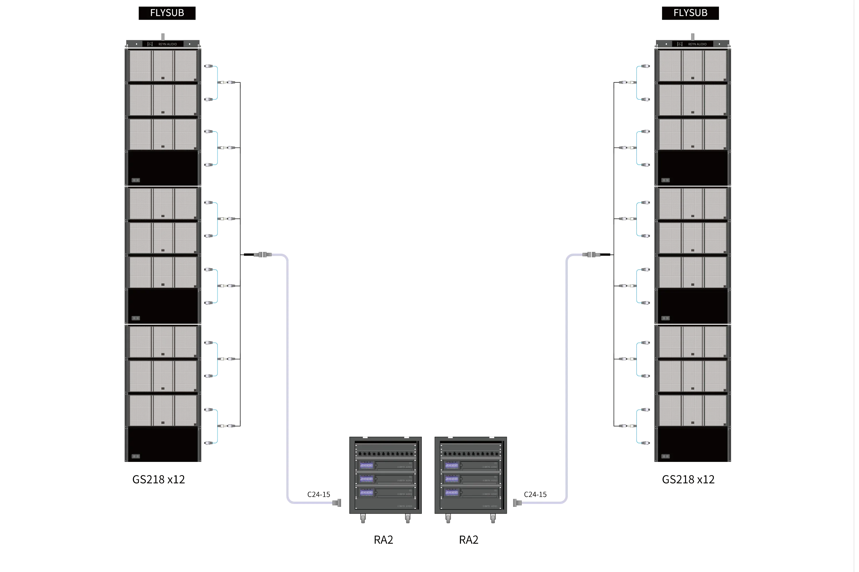 GS218 箱体采用高密度桦木箱体,搭配铝镁合金快速吊挂系统,兼具结构强度与轻量化特性,既能抵御户外搬运中的碰撞,又便于实现空中吊装或地面堆叠;